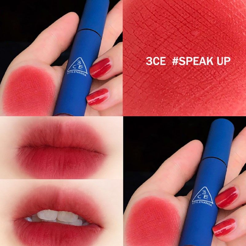 [CHÍNH HÃNG] Son Lì 3CE Xanh , Son 3ce Vỏ Xanh Speak Up-Đỏ Nâu, Bao Đẹp , Mùi Thơm, Có Tem , Mã Vạch Đầy Đủ free ship