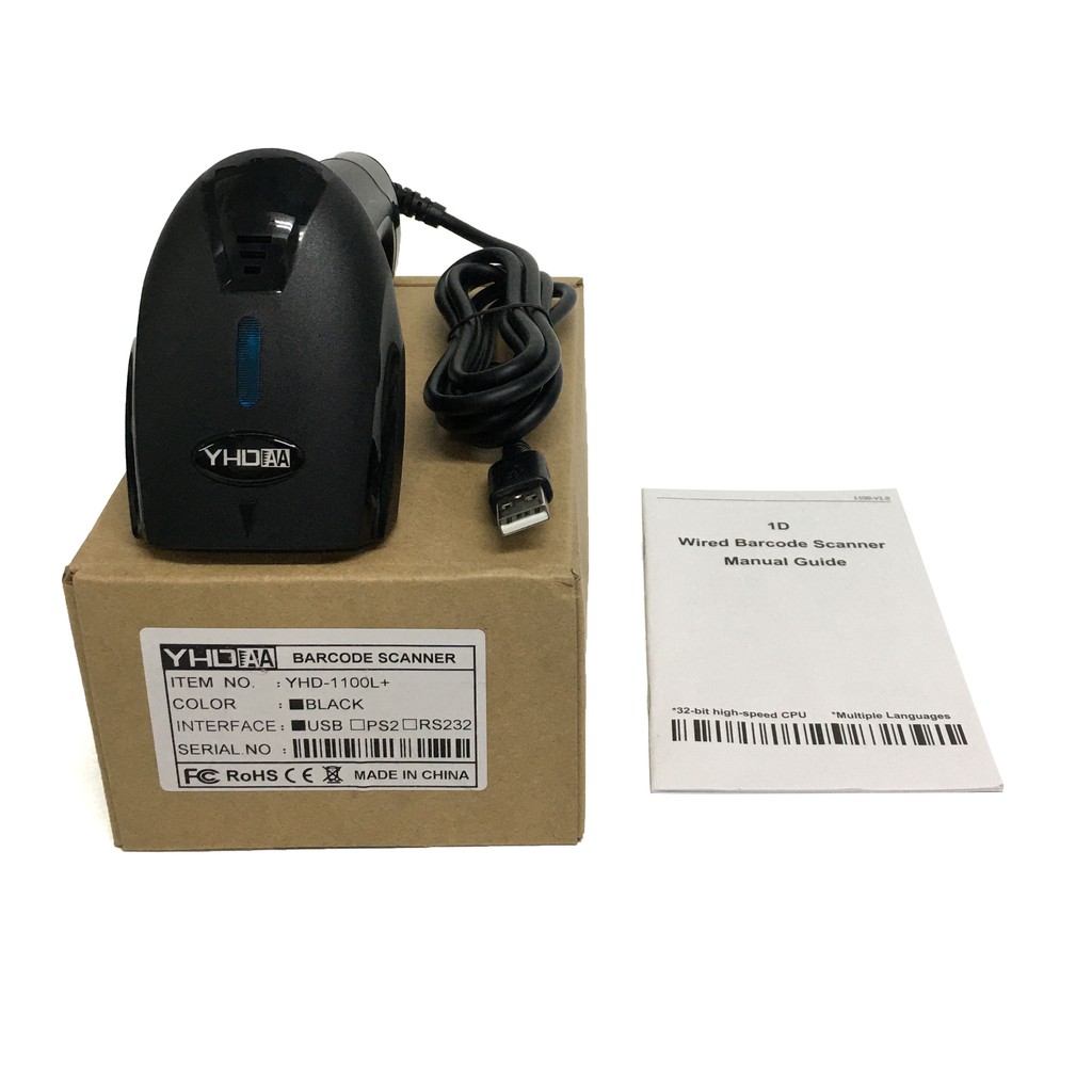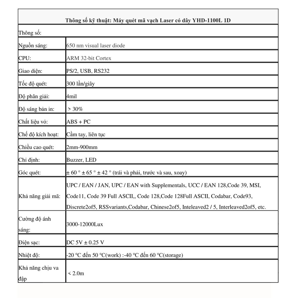 Máy quét mã vạch cầm tay YHD 1100L đầu đọc Barcode tia Laser 1D có dây kết nối Máy tính (Bảo hành 12 tháng) free ship