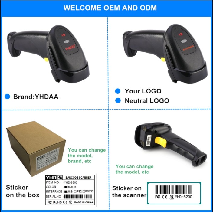 Freeship- Máy quét mã vạch Barcode YHD-8200 (1100L 1D) đầu đọc mã vạch tia Laser 1D hỗ trợ kiểm soát Háng Hóa (Hàng Chính Hãng) mua tại đây