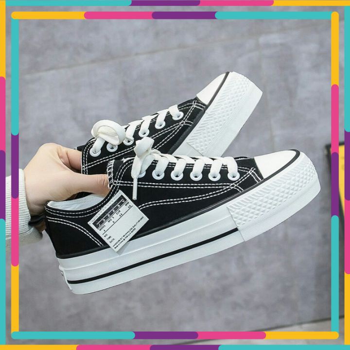 Giày Sneaker Nữ , Giày Thể Thao Nữ Tăng Chiều Cao 5 cm FD7 Thiết Kế Phong Cách Hàn Quốc Hai Màu Đen Trắng Nổi Bật