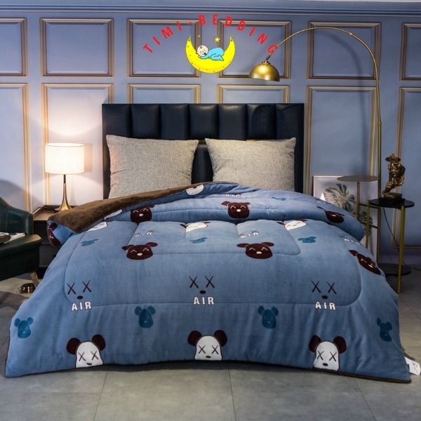 Chăn lông cừu Yuki chính hãng mẫu mới có họa tiết và tem quét mã vạch - Timibedding free ship